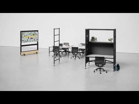 From basic desks, through to bench / standing-height tables and room dividers by scaffold sections, Vitra Comma can be used to create (and re-configure) workspaces into either more collaborative or private areas depending on the needs of the company.